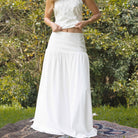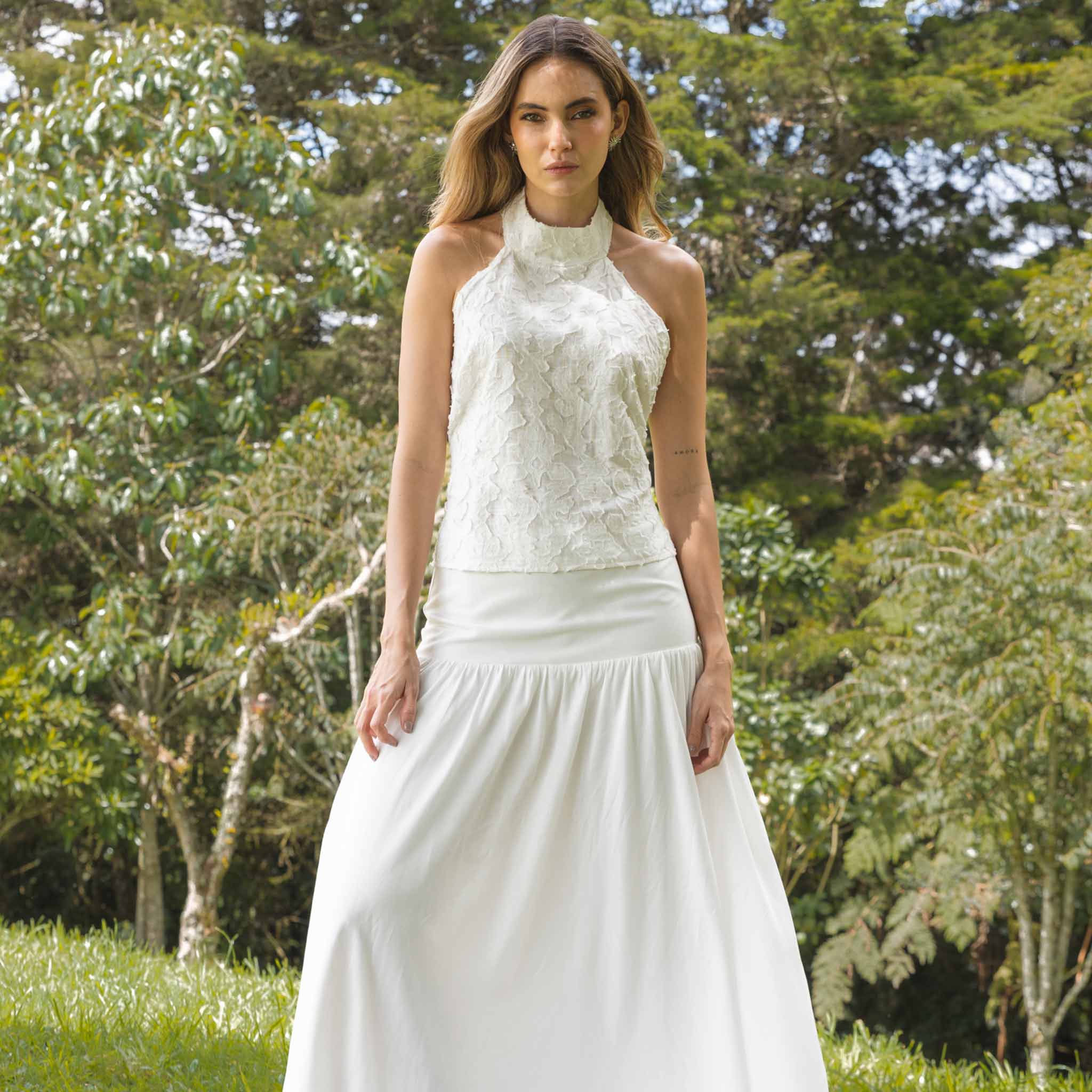 Fluida, ligera y de movimiento natural, la Falda Boho está confeccionada en una tela suave y aireada que se adapta con facilidad al cuerpo. Su pretina ancha favorece la silueta y permite usarla a la cintura o más baja sobre la cadera, según el estilo que prefieras. Ideal para acompañar tops o camisas sueltas y lograr un look relajado y atemporal.